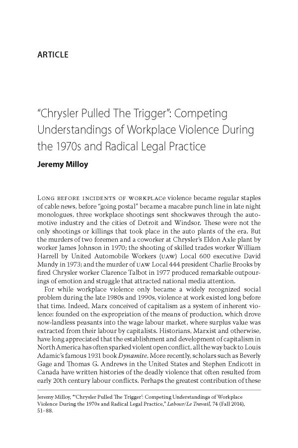 "'Chrysler Pulled the Trigger': Competing Understandings of Workplace Violence During the 1970s and Radical Legal Practice"